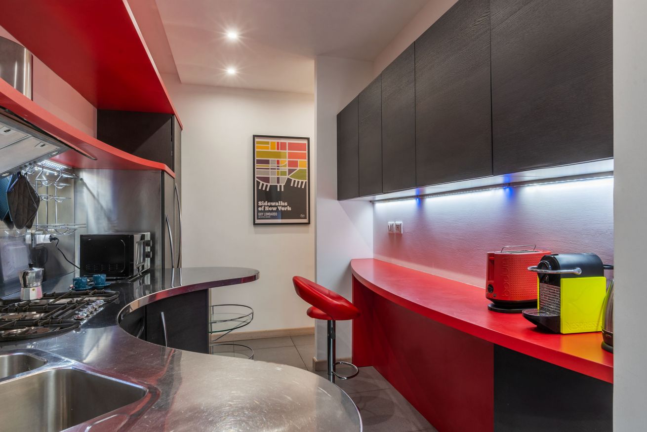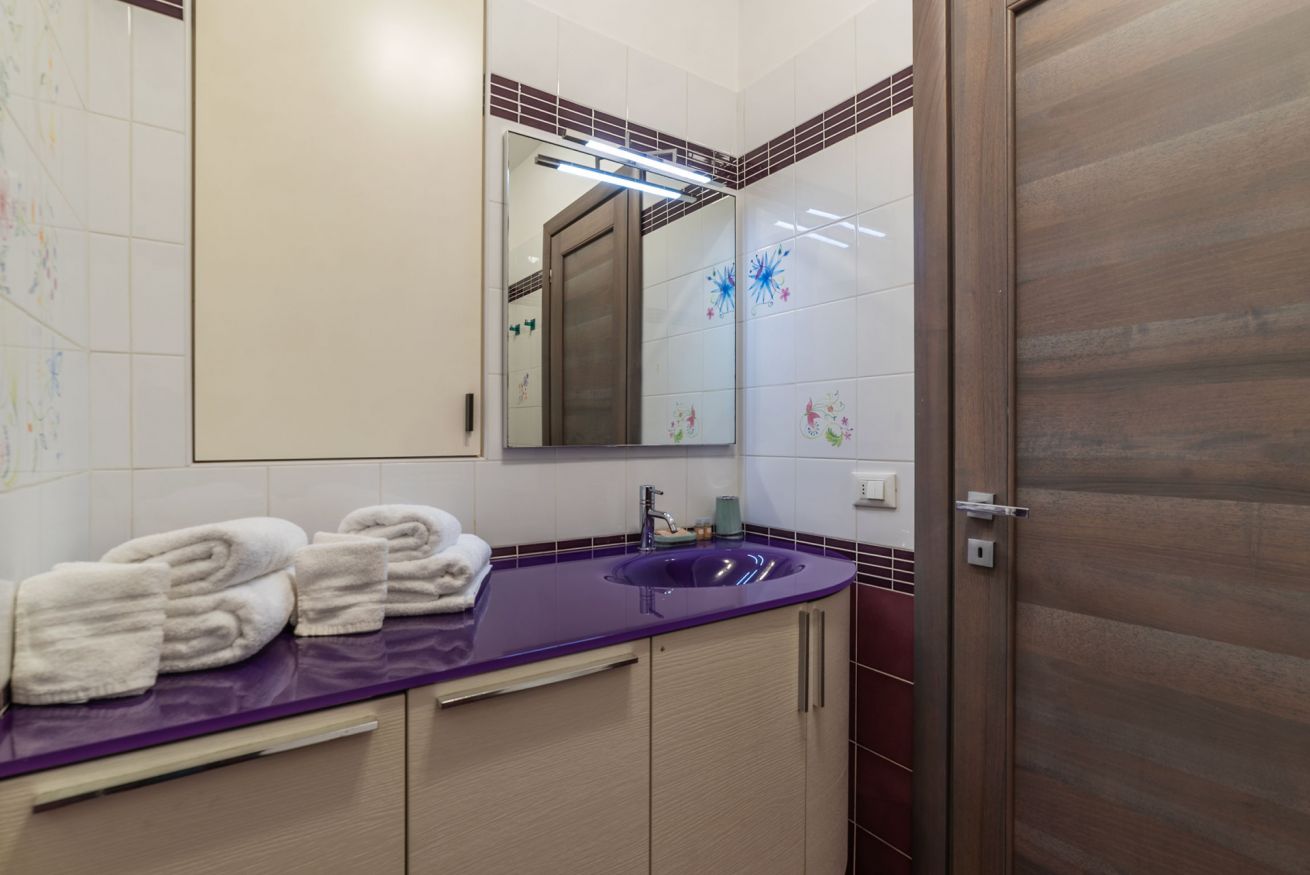 L'appartamento è composto da un accogliente salotto con divano, tavolo da pranzo e balcone; cucina completamente accessoriata con forno, microonde, frigorifero e freezer, toaster, bollitore e macchina del caffè. La camera da letto principale dispone di un bagno privato con doccia, mentre la seconda camera matrimoniale è accanto al secondo bagno completo con vasca idromassaggio. L'appartamento è perfetto per una famiglia di 4 persone o per 2 coppie di amici in cerca di privacy. Dotato di aria condizionata, connessione a fibra ottica veloce, l’appartamento offre tutto il comfort di cui avrete bisogno per un soggiorno indimenticabile.