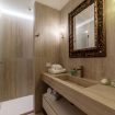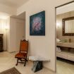 Le finiture sono ricercate: il pavimento in travertino, simbolo della storia millenaria di Roma, si fonde con arredi contemporanei e pezzi di design, creando un ambiente raffinato e accogliente. L’arte, protagonista indiscussa, è presente in ogni angolo grazie alle opere in esposizione provenienti dalla adiacente Galleria Sinopia.