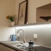 L'appartamento è composto da una cucina finemente arredata e dotata di tutti i comfort; il salotto con il suo fascino senza tempo; una camera da letto matrimoniale con letto in fattura pregiata e un bagno con doccia.