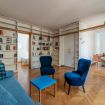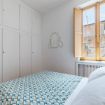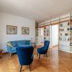 L'appartamento è composto da un'ampia e luminosissima zona living, arredata con gusto con una grande libreria, divano e poltrone. Le due grandi porte finestre conducono al terrazzo. Lo split dell'aria condizionata si trova nel soggiorno ed è in linea con le due camere da letto, due ambienti molto intimi, accoglienti e silenziosi. La camera da letto principale con letto alla francese vanta una vista pazzesca sui tetti di Roma. La seconda camera, più piccola, è arredata con un divano che all'occorrenza può essere trasformato in un comodo divano letto. Le camere da letto sono di fronte allo split dell'aria condizionata, che dunque riesce a raffreddare tutti e tre gli ambienti.