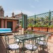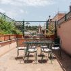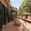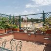 Le due porte finestre del soggiorno, infatti, conducono alla prima delle due terrazze; da qui, attraverso una scala a chiocciola, si può raggiungere la seconda terrazza, più ampia, ricca di piante e fiori e arredata con tavolo, 6 sedie e divano per le giornate più assolate. Dalla terrazza potrete godere di una vista panoramica verso Villa Borghese e Villa Medici da una parte e verso il centro storico dall'altra... assolutamente indimenticabile!